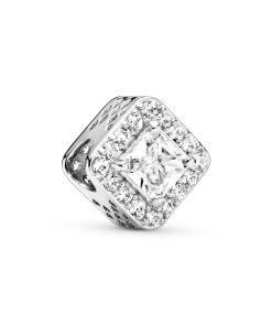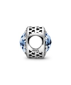 Star silver charm with clear cubic zirconia and iridescent. white. blue and transparent Murano glass