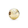 Fitted with a swirling Murano glass centrepiece. this Pandora Moments charm is set on a 14k Gold Plated core. our unique metal blend plated with 18k gold. The combination of white and transparent glass creates an ethereal feel that works in combination with almost any other charm. Make it yours.