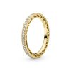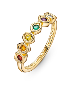 Let the cool blues rule your style with this sparkling ring in 14k Gold Plated . The ring detailed with alternating lines of hand-applied blue enamel and cubic zirconia and engraved on the inside with a single heart. The ring is hand-finished in our18k gold-plated unique metal blend and looks equally good worn alone or together with other band styles as part of a personal ring stack.