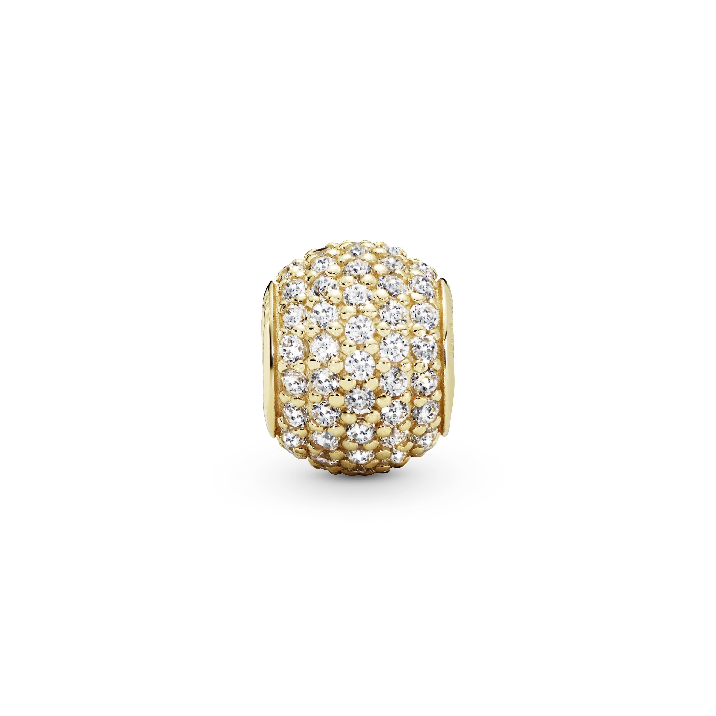A classic Pandora Moments design that never goes out of style. this pavé ball charm is made from precious 14k gold. making it a luxurious addition to your charm collection. Expertly pavé-set with cubic zirconia. it adds instant glamour and sparkle to your favourite bracelet – as a solo adornment or together with other meaningful pieces you’ve collected over time.