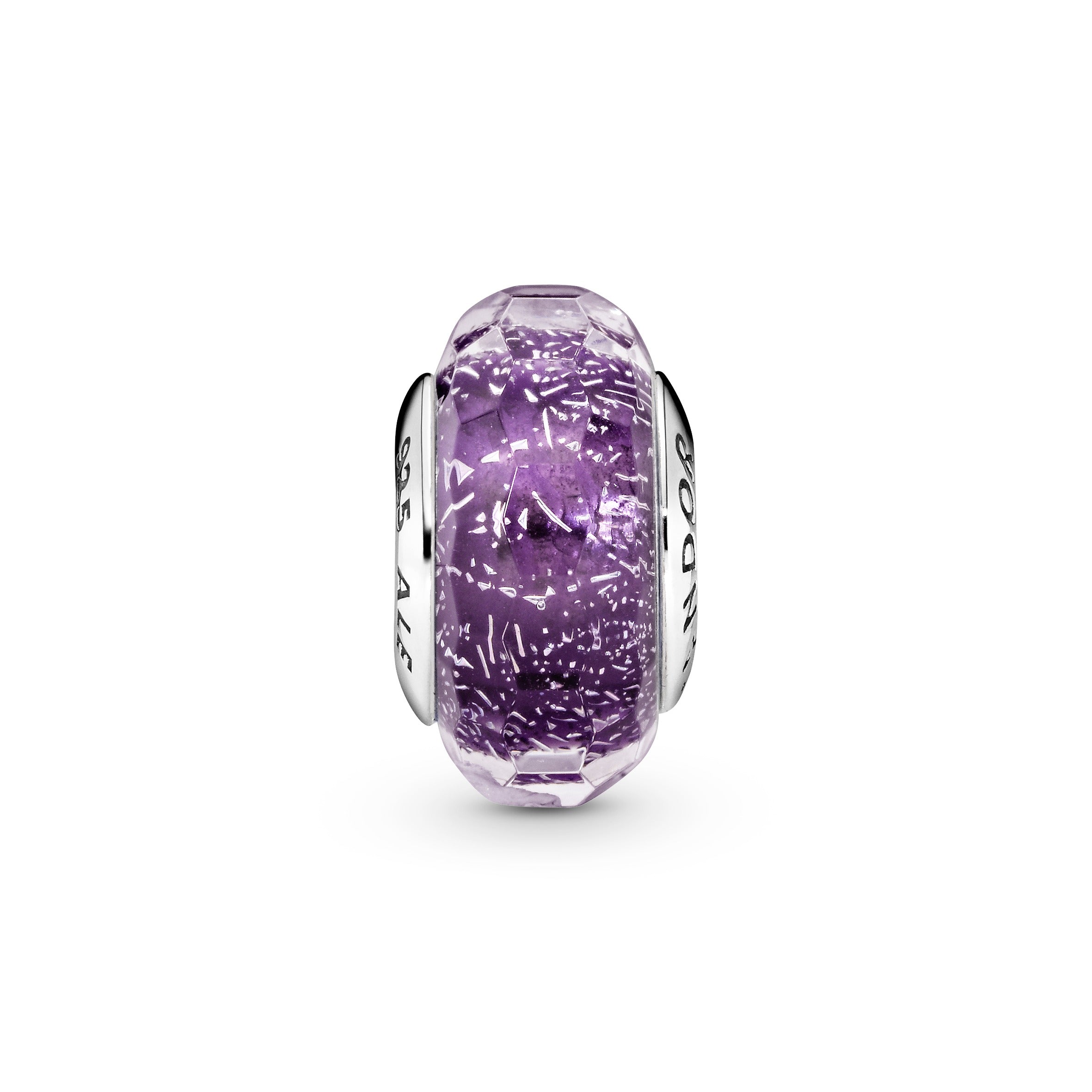 Defined by its deep purple hue and flecks of sparkle. this Murano glass charm is expertly crafted and hand-finished to perfection. The iridescent glass is faceted to reflect the light from every angle. Set on a sterling silver core. it lends a pop of colour and personal meaning to a Pandora Moments bracelet or bangle.
