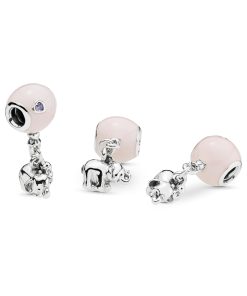 The positive symbolism of the elephant makes this sterling silver dangle charm a talisman of luck. Crafted from sterling silver. it’s shaped as a pink enamel balloon with a dangling elephant. A heart-shaped crystal completes the pretty piece. made for Pandora Moments bracelets.