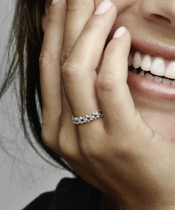 Bring starry sparkle to your outfits with the Band of Asymmetric Stars Ring. Inspired by celestial beauty. the sterling silver ring features a band of asymmetric openwork stars with delicate milgrain details. The show-stopping design looks equally beautiful worn on its own or layered with other Pandora rings. A classic and sophisticated adddition to any woman’s wardrobe. Alternatively. surprise someone special with this piece as a token of your love.