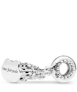 Write your own fairy tale with our castle dangle charm in sterling silver. The detailed design has see through windows and gates for depth and dimension to the piece. It’s engraved with the words Our fairy-tale so that you can wear or share it to highlight the sentiment.