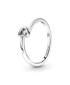 Make your loved one feel special with the Clear Tilted Heart Solitaire Ring. Hand-finished in sterling silver. this design is inspired by the story of Romeo & Juliet. Featuring a thin polished band. the ring includes a titled heart-shaped stone. This style can be stacked with other solitaire rings to create an asymmetric pattern. making it the ideal gift for Valentine’s Day.