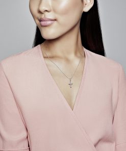 The cross is a symbol with multiple meanings. Put your spin on the classic design with this sterling silver necklace pendant. It’s carefully set with cubic zirconia stones and detailed with cut-out hearts for loving sparkle. The keepsake style also makes a wonderful gift.