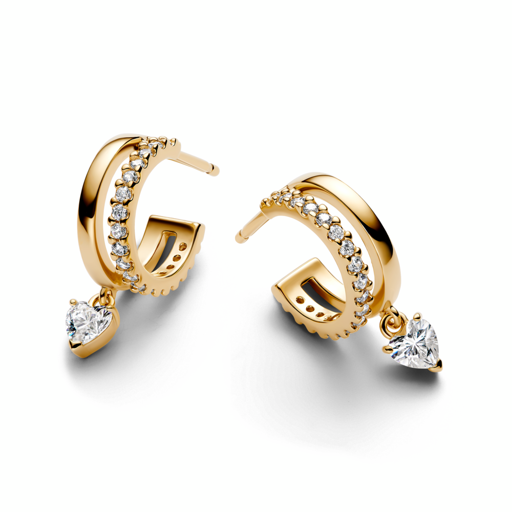 Heart 14k gold-plated hoop earrings with clear cubic zirconia