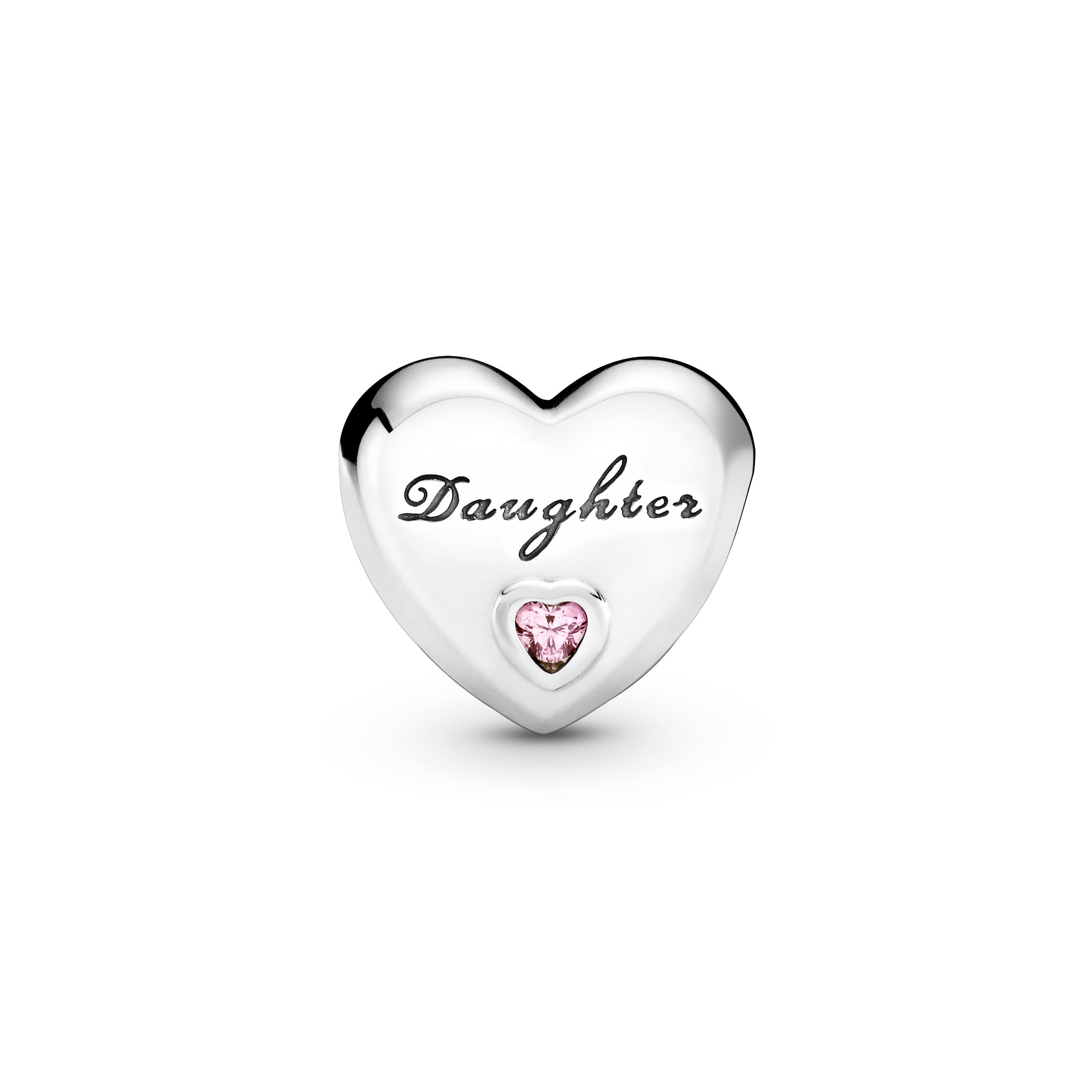 Moments charms are made for you to express the things you love – something. somewhere or someone. Made to celebrate the bond between parents and daughters. our sterling silver family charm is shaped as a heart. Polished to a high shine. the simple yet meaningful style is trimmed with heart-shaped pink stones and the engraving Daughter. We think it makes a meaningful gift to show the story you share.