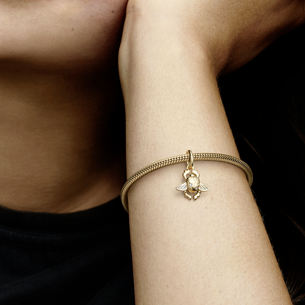 Celebrate the 30th anniversary of ‘s Aladdin with x . This 14k gold-plated charm is inspired by the golden Scarab Beetle. the key to the Cave of Wonders and its dangerous treasures. where Aladdin famously meets Carpet and finds Genie’s lamp. Set with round brilliant-cut cubic zirconia. the dangle charm is finished with plique-a-jour enamel wings that really move up and down. for an enchanting effect. Style this symbolic Aladdin Scarab Beetle Dangle Charm on your favourite charm holder and face the world with your favourite stories by your side.