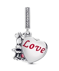 Put the love in your style with sweethearts Mickey and Minnie Mouse. immortalised on this sweet dangle charm. The sterling silver design is detailed with hand-applied red enamel hearts and glittering cubic zirconia touches. Wear it as a reminder of a loving relationship. It also makes a thoughful gift to represent a story of love.