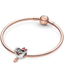 The Minnie Mouse Mum Heart charm is the perfect gift for every mum. Hand-finished in sterling silver with openwork script ‘MUM’ and ‘LOVE’ on either side. the charm features a dangling detail in 14k rose gold-plated metal. This heart-shaped piece also features a little red heart and bow with hand-applied enamel. Say it with a special piece that mum will treasure as a part of her collection.