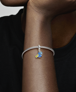 Channel your inner optimist with Pixar’s Dory. This sterling silver dangle charm features the much-loved forgetful fish brought to life with hand-applied enamel in transparent blue. yellow and black. with raised detailing on her fins and a characteristic sunny smile. Her articulated tail can move from side to side like she’s really swimming. Add this charm to your line-up as a reminder to stay focussed on your goals – and never forget to look on the bright side!