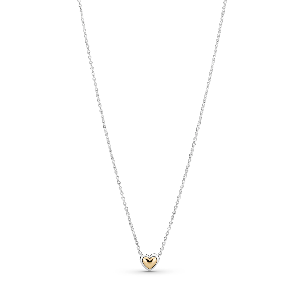 Stand out from the crowd with the Domed Golden Heart Collier Necklace. Hand-finished in sterling silver. this design includes a heart-shaped pendant with a 14k gold centre. which has a plain polished look for a subtle effect. The necklace includes a slider clasp to adjust the length. Style this design with heart-shaped earrings for a look filled with self-love. Alternately. surprise someone close to you with this piece as a sign of your affection.