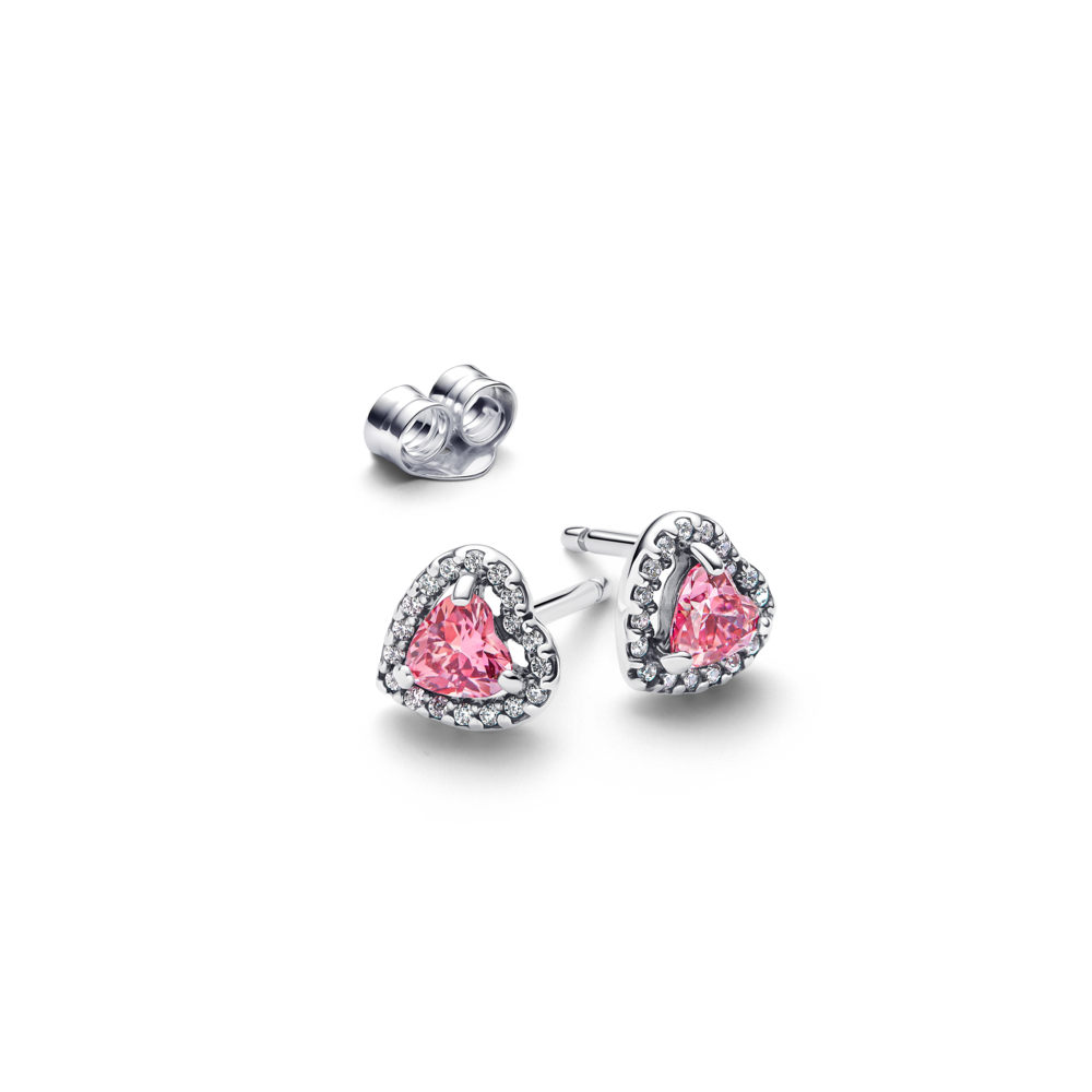 Heart sterling silver stud earrings with fancy pink and clear cubic zirconia