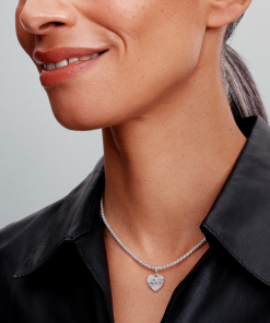 Engravable love heart sterling silver dangle with clear cubic zirconia