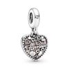 Keep family close to you with this engraved charm. Shaped as a heart locket that opens to reveal the word Family. the polished sterling silver dangle charm is set with a pink crystal as a shining tribute to the love you share. Wear it on your Moments bracelet to bring meaning to your styling. or gift to a special woman in your life.