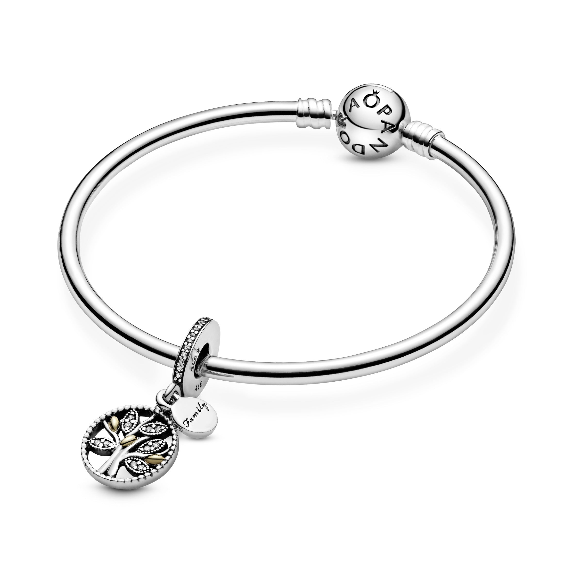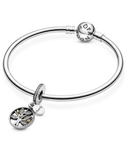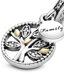 Celebrate all the generations of your family with this family tree charm. Hand-finished with 14k gold detailing and shimmering stone-embellished leaves. this sterling silver charm is complemented with a miniature pendant engraved with ‘family’. A charming gift idea that will be cherished by all your loved ones.