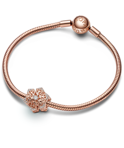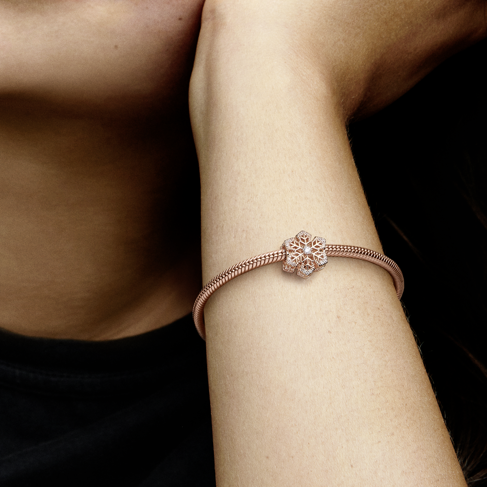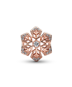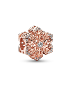 Elevate your winter-inspired looks with the Festive Snowflake Charm. Featuring an intricate openwork snowflake design in elegant 14k rose gold plating. this piece celebrates the symbolism of the snowflake motif – every single snowflake is special. just like you and the ones you love. The charm features a central cubic zirconia stone on each side along with 36 micro bead-set cubic zirconia for a frosty shimmer. A delicate. meaningful piece for your seasonal jewellery collection.