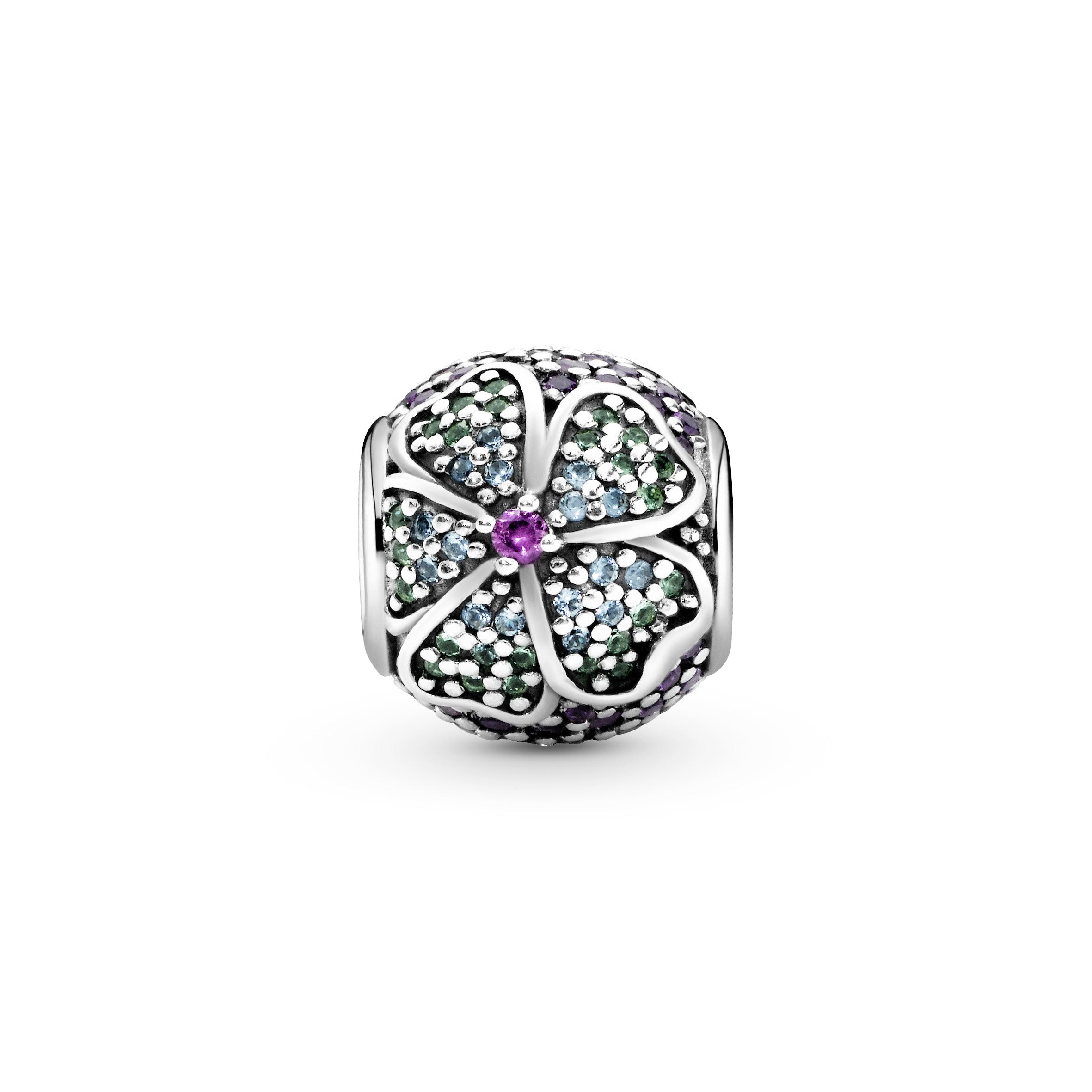 The secret to personal style? The things you love. Wear the pieces that remind you of someone. something or somewhere special. Like this glistening pavé ball charm. detailed with a flower pattern set with colourful crystals. The sterling silver charm is made for Moments bracelets and bangles. and adds a pop of colour to your styling.