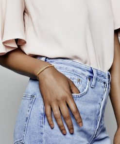 Bringing natural appeal to your look. this unique bracelet is shaped as a flower stem with segments designed to move with your every move. The bracelet is hand-finished in 14k Gold Plated . our 18k gold-plated unique metal blend. Embellished with cubic zirconia and fitted with a sliding logo ball clasp for the perfect fit. the versatile bracelet can be worn alone of part of a stack.