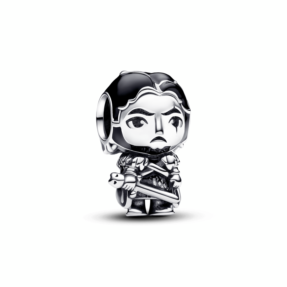 Game of Thrones Jon Snow sterling silver charm with black and transparent grey enamel