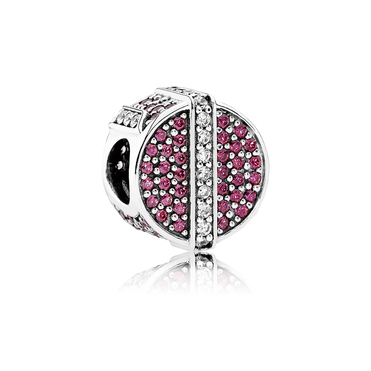 Featuring sparkling red accents and an ornate bow. this glittering round gift box charm in sterling silver captures the excitement of the festive season.