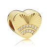 This charm is a sweet as the honey that inspires its shape. The 14k Gold Plated heart charm fuses love and nature to great effect. Made in out unique metal blend plated with 18k gold. the openwork design resembles honeycomb and cubic zirconia accents create a honey-like surface effect. Wear it on Moments bracelets or bangles or string it on a necklace chain as a pendant.