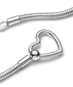 Snake chain sterling silver necklace with heart clasp
