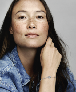 Mark a special connection with the Heart Family Tree Chain Bracelet. Hand-finished in sterling silver. this openwork heart-shaped disc is decorated with clear stones. Our iconic family tree motif with polished leaf details sits on top of the disc. The bracelet features two different-sized chains fused together. a slider clasp for an adjustable fit and a sparkling leaf branch detail attached to the end of the chain. Present this piece to a close family member to express your love.