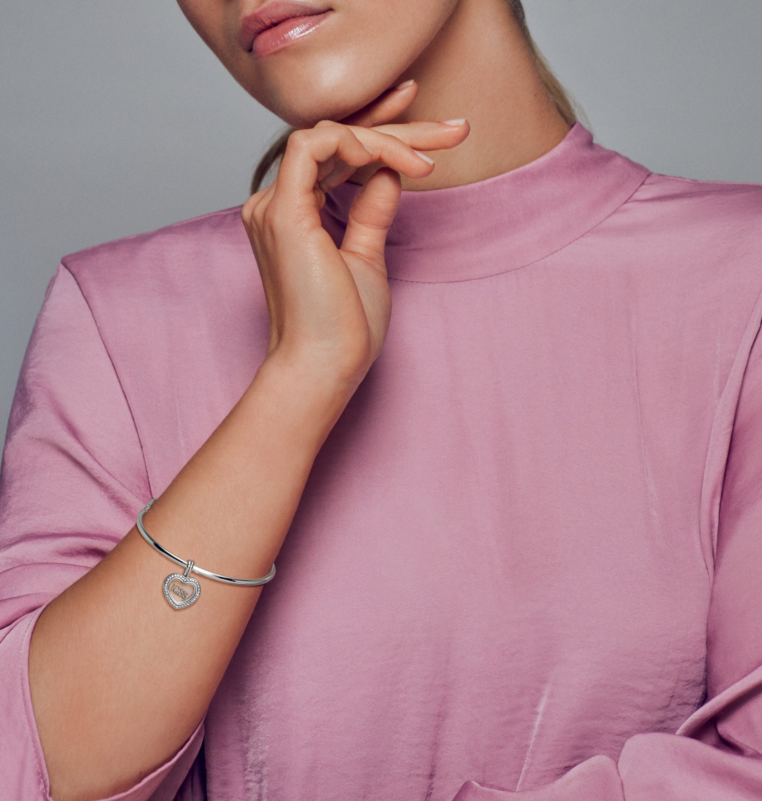 Lockets tells your story with locket elements displayed in colourless synthetic sapphire windows. Finished with our logo. this heart-shaped dangle charm can be worn on bracelets or necklaces alike. filled with the pieces that represent your story or left unfilled for a more minimalist look.