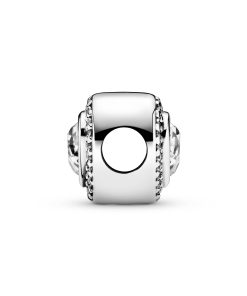 Make this sparkling charm hand-finished in sterling silver the glittering centrepiece of a favourite Moments bracelet. The double-sided love charm is centred with a brilliant cubic zirconia heart framed by smaller stones. Wear with other heart-shaped designs for a look of love or style it with your favourite charms.
