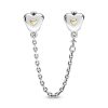Detailed with cubic zirconia accents on the heart-shaped charms. this safety chain in sterling silver is made to keep your stories safe on Moments bracelets. The chain is fitted with swivel ends to prevent it from tangling during use. To wear. simply thread one side onto your bracelet before adding charms. connecting the unattached side of the safety chain once your charms are in place.