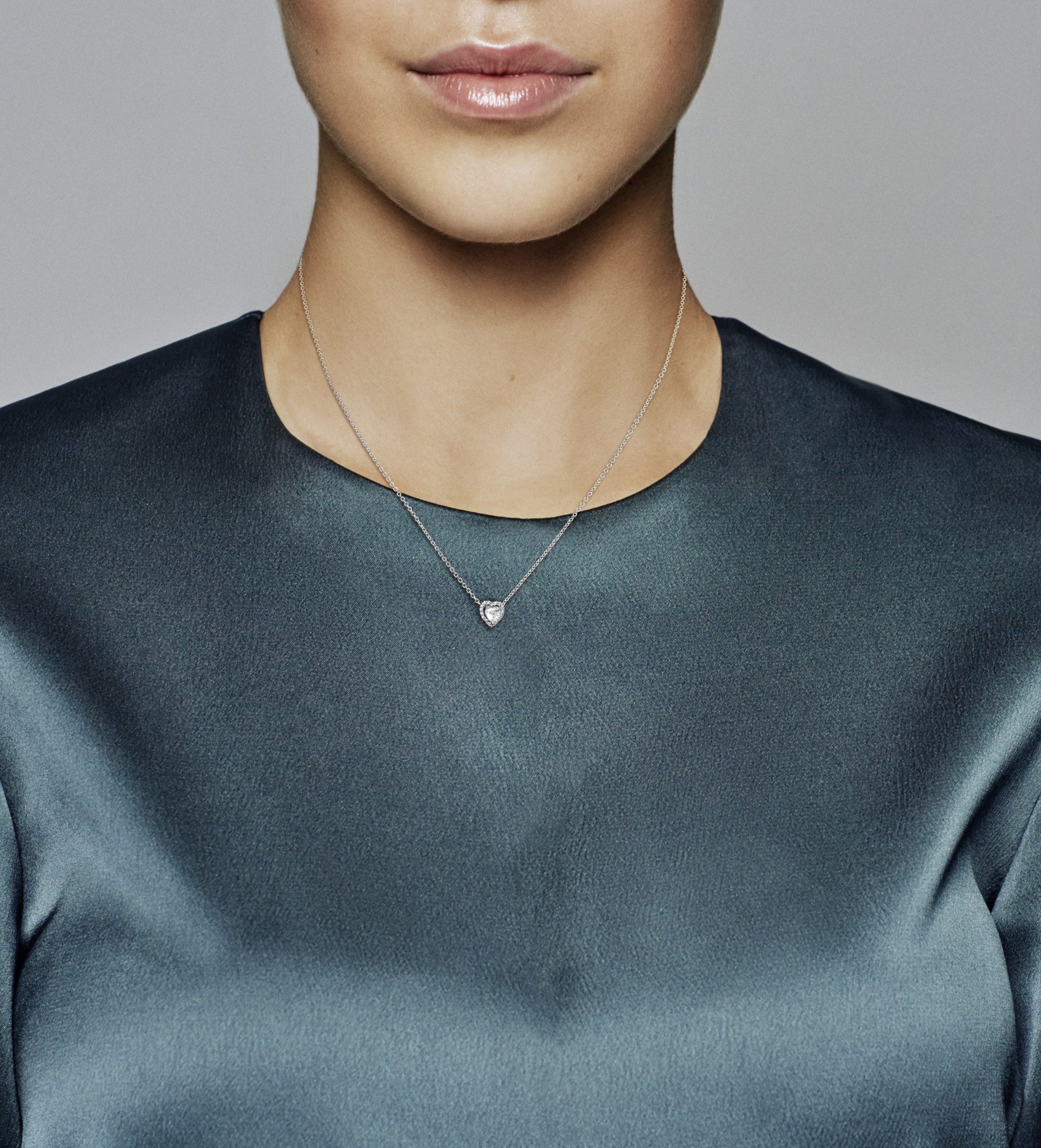 Let love guide your look with this sterling silver heart necklace. which can be worn in two different lengths thanks to its adjustable clasp. The sparkling healing heart cut of the cubic zirconia marks the first time this stone shape is being used in the Timeless Elegance collection and is a modern take on a love token. which is ideal as a gift for someone special. The contemporary design and elevated stone setting make it an easy to wear piece they’ll love for years to come.