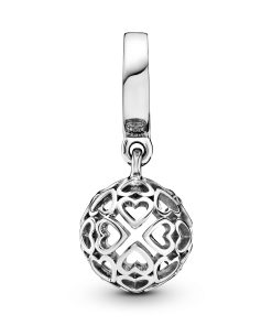 Hearts add romantic edge to any look and this pretty dangle charm is made from sterling silver. shaped into an openwork ball decorated with filigree hearts. Wear it as a symbol of something. someone or somewhere you love. Thread it on your Pandora Moments bracelet or bangle. or wear it on a necklace chain as a pendant. Your style sets the tone.