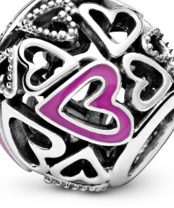 Can you ever have enough love? Our freehand heart featured on this sterling silver openwork charm signifies perfectly imperfect real love. This love story is emphasised with pops of raspberry pink enamel to lend a fashionable edge to your look and let you express your creativity. Add this collection of hearts to your stylings as a fun reminder of all the people. places. pets and things in your life that you love.