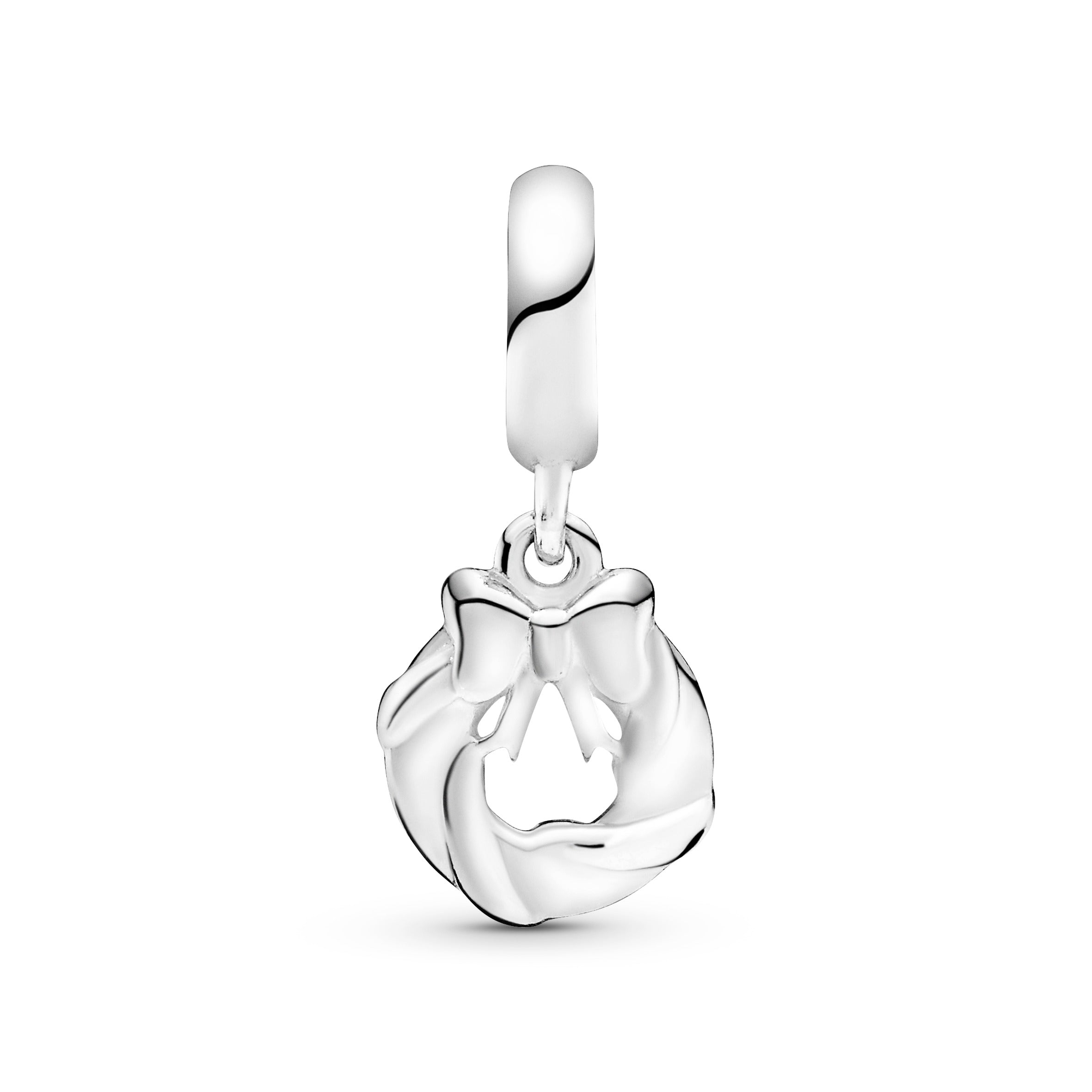 Put some holiday spirit into your styling. A festive adornment on Pandora Moments bracelets. our Christmas wreath dangle charm is perfect for a themed look. Coloured with seasonal green and red enamel. the detailed design in sterling silver lends subtle movement to your look. Wear with other festive charms to create a yuletide styling.