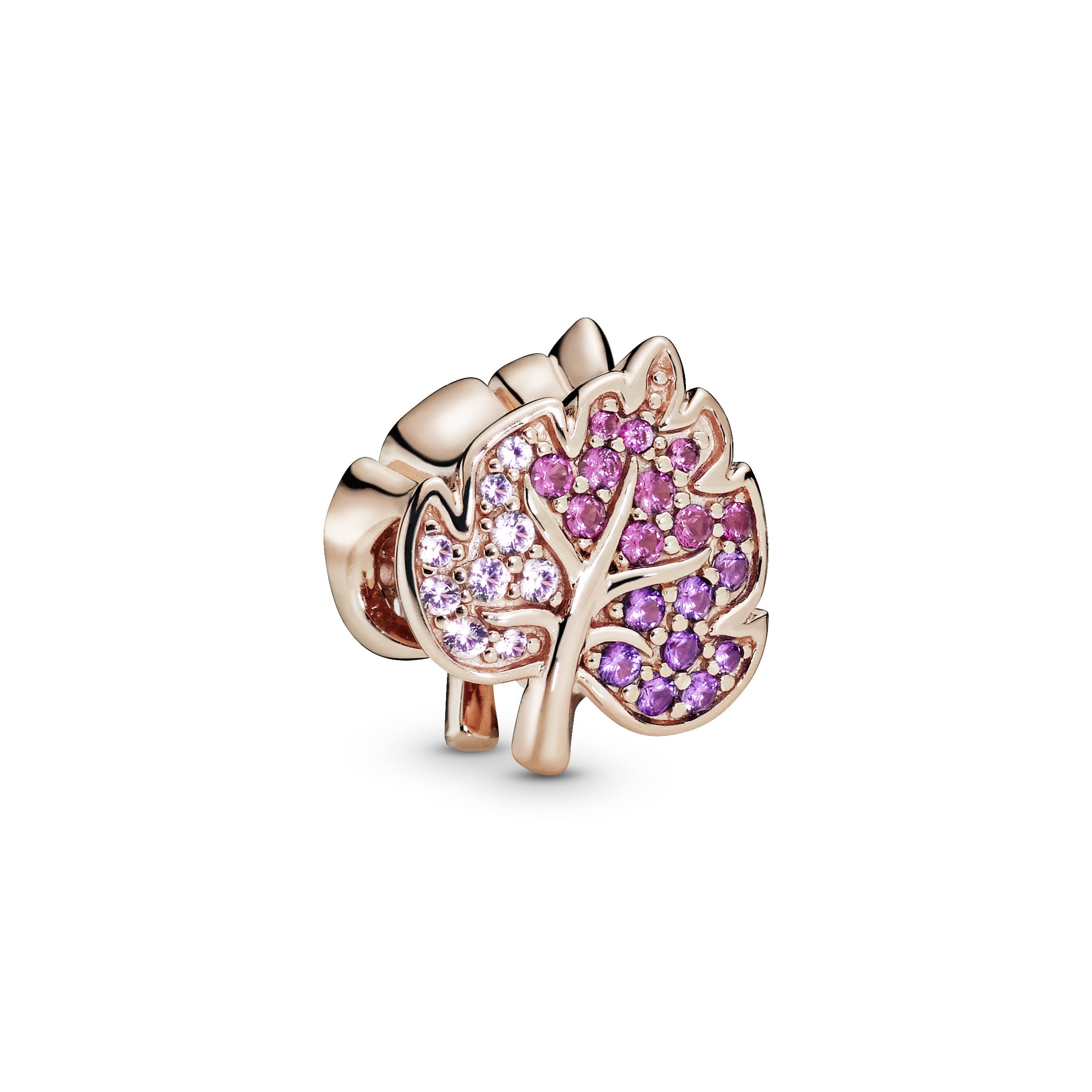 Leaf 14k Rose Gold-plated charm with pink mist. cerise and royal purple crystal