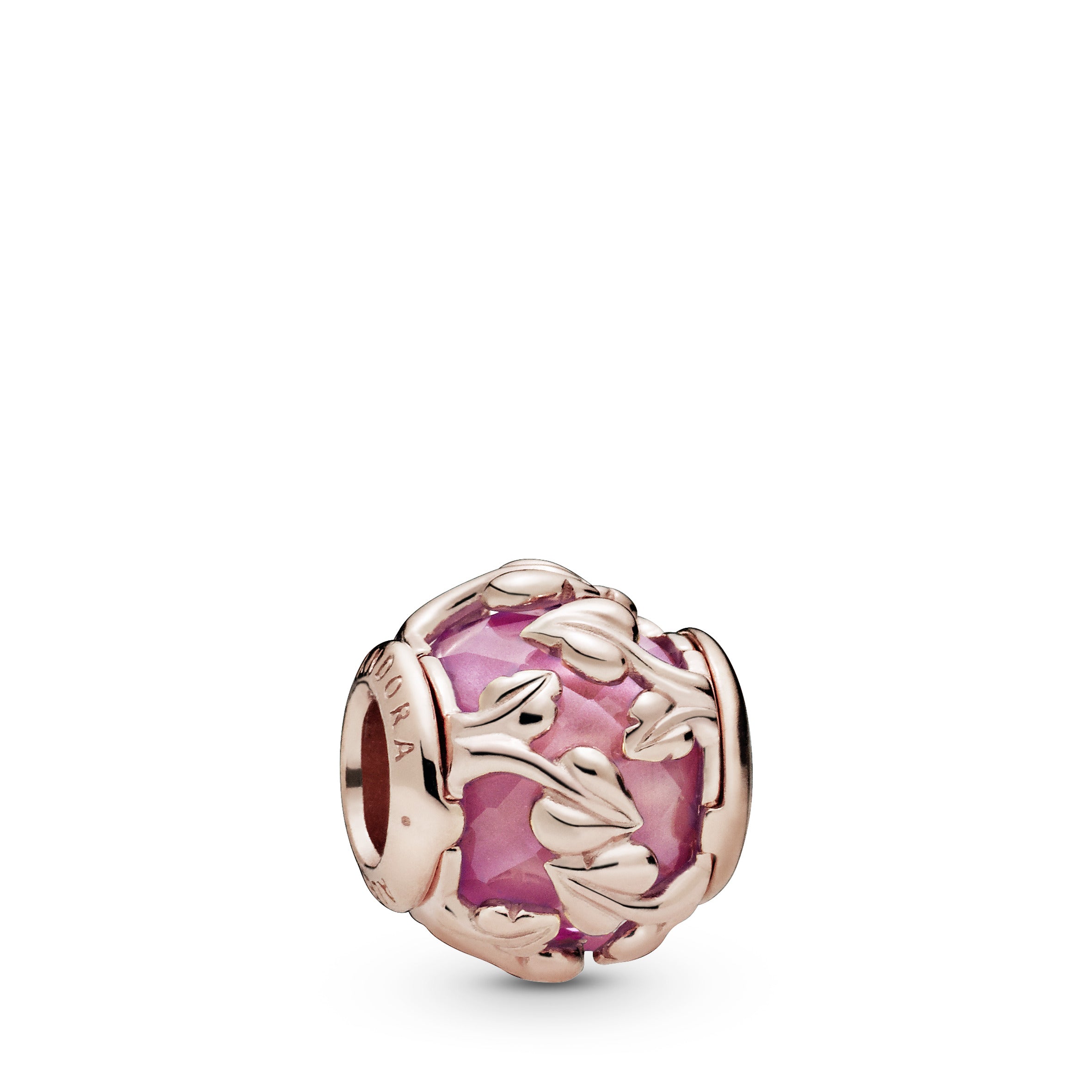 Bring out the best in you and your outfits with this pink round charm encased in an intricate winding leaf pattern. This eye-catching charm takes its inspiration from the magical world of the changing forest during its most colourful season and the special atmosphere within. Add a pop of pink to your Pandora Moments collection or gift it to a loved one that loves warm. sophisticated hues with a hint of mystery.