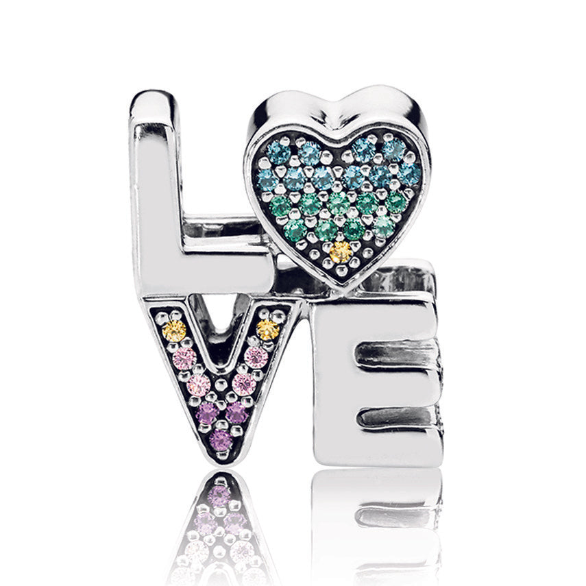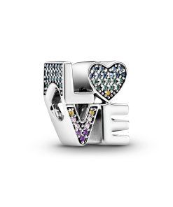 Wear love loud and proud with this pavé charm. The multicoloured charm is decorated with a rainbow of crystals and cubic zirconia on bold capital letters that spell out the word Love. It makes a cool centrepiece on a Pandora Moments bracelet or a meaningful gift for someone special.