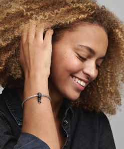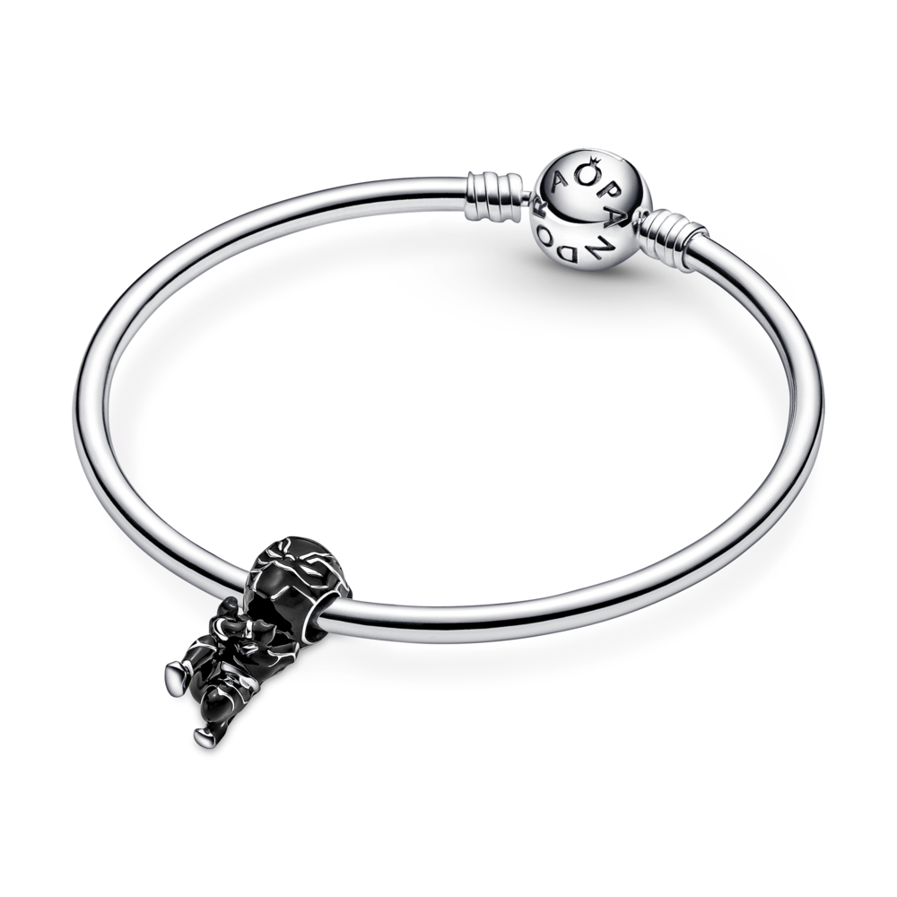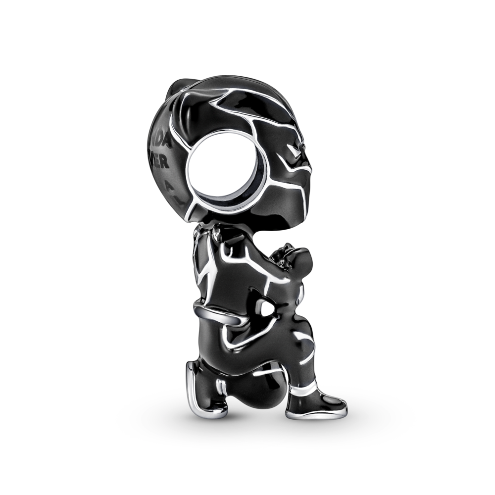 Choose loyalty with our Marvel The Avengers Black Panther Charm and share your love for the Marvel Cinematic Universe with the world. The warrior king is designed in his signature pose and features hand-painted black enamel with sterling silver lines defining his suit. Wakanda Forever! is engraved on the back of his helmet. Add Black Panther and more of your favourite heroes to our Pandora Moments Marvel The Avengers Logo Clasp Snake Chain Bracelet. his Marvel must-have arrives with exclusive packaging making this an extra-special addition to your collection.