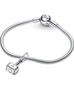 Bring the thunder with our Marvel The Avengers Thor’s Hammer Dangle Charm and share your love for the Marvel Cinematic Universe with the world. Hand-finished in sterling silver. Thor’s hammer is brought to life with swirling brown enamel. engraved scratch marks and Asgardian-style rune symbols. The side of the hammer is engraved with Worthy as a reminder of the source of Thor’s power. Add this charm and more of your favourite heroes to our Pandora Moments Marvel The Avengers Logo Clasp Snake Chain Bracelet. This Marvel must-have arrives with exclusive packaging making this an extra-special addition to your collection.