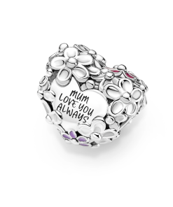 Give Mum flowers that last forever with the Mum Daisy Heart Charm. Crafted in sterling silver with pink and purple enamel. this charm is decorated with a wrapping of daisies to symbolize joy and abundance. The engraving reads MUM LOVE YOU ALWAYS – a heartfelt message to remind her of your bond.