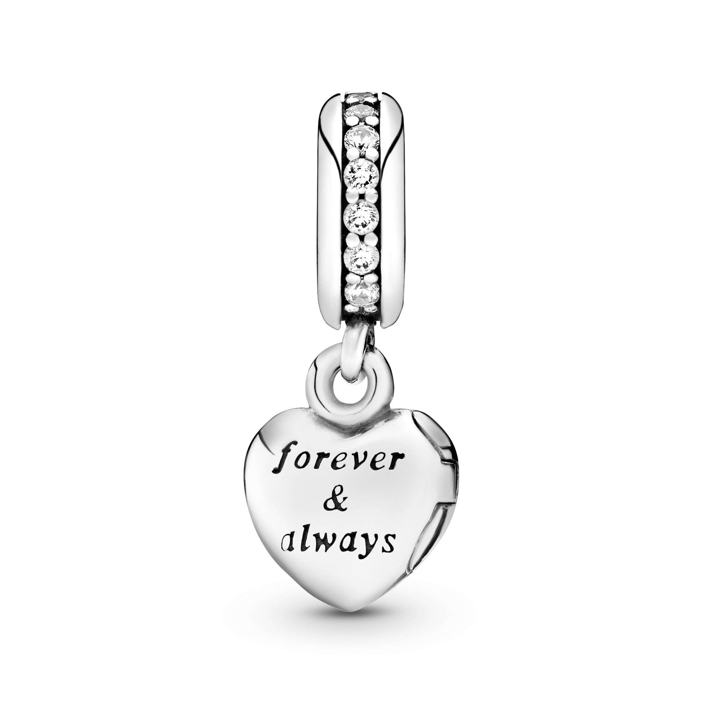 Surprise a wonderful wife with a lasting token of your appreciation with this sterling silver dangle charm for Moments bracelets. Suspended from a bail accented with cubic zirconia. it’s shaped as a heart locket and engraved with My beautiful wife. forever and always. There won’t be a dry eye left in the house.