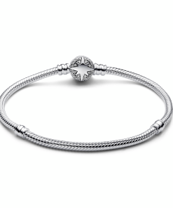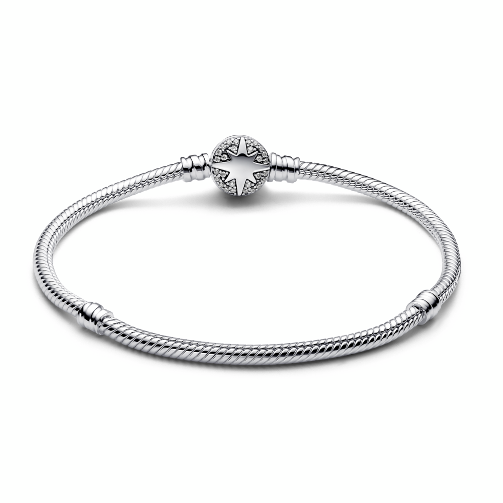 Snake chain sterling silver bracelet with north star clasp and clear cubic zirconia