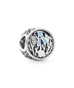 A memento of a love of the ocean or a reminder of a holiday by the sea. our sterling silver button-shaped charm teems with life from under the sea. Enamel and stone fish. shells and underwater plants decorate the design. which is trimmed with stones along the edge. It’s sure to make a splash on Moments bracelets. or as a gift to show her you know her.