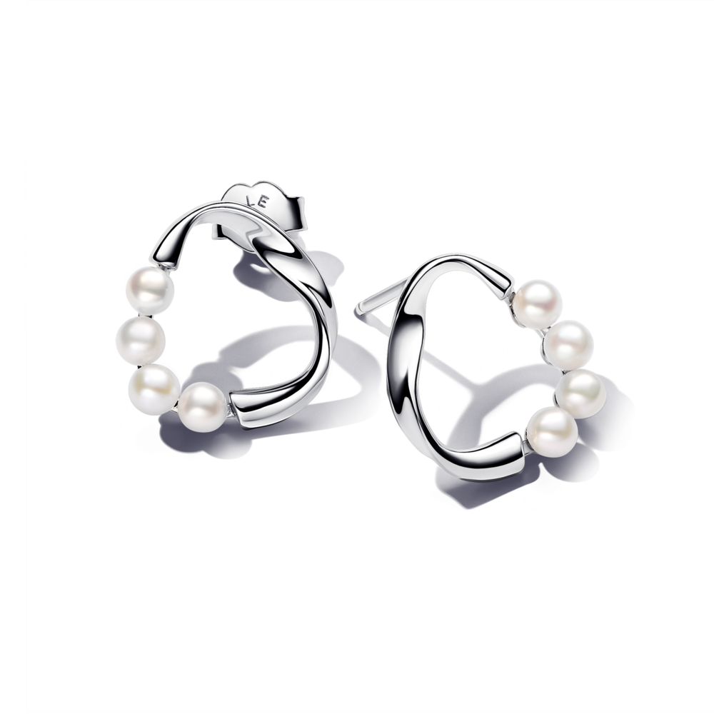Organically Shaped Circle & Treated Freshwater Cultured Pearls Stud Earrings