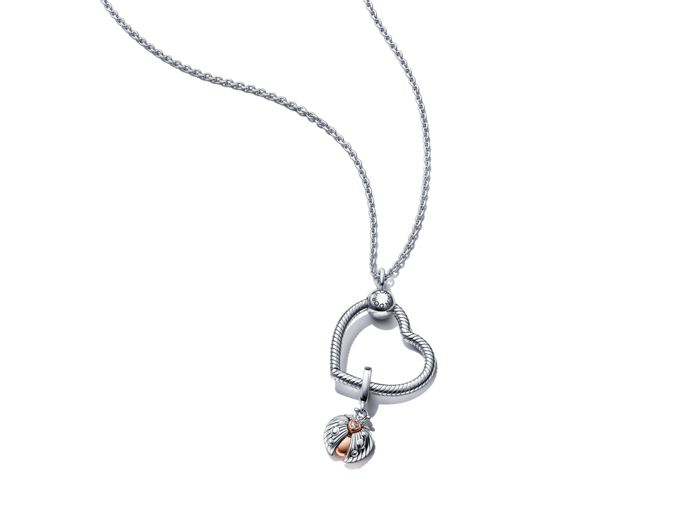 Spread your wings and take flight with this year’s Club Charm. A universal symbol of luck and hope. our Club 2022 Ladybird & Heart Dangle Charm features sterling silver wings that open to reveal a glowing 14k rose gold-plated heart. set with a round brilliant-cut lab created diamond as a special surprise inside. Engraved with the message Hope has wings on the back of the heart. wear yours to symbolise your hopes for the year ahead and beyond.