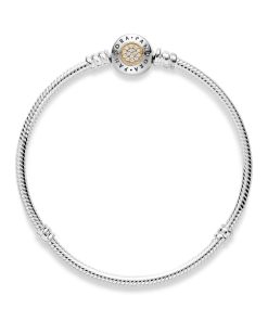 Every charm collection needs a bracelet to show it off. Transforming our classic snake chain bracelet into a new icon of personal style. this Moments piece is reimagined with a button-shaped logo clasp centred with 14k gold and twinkling cubic zirconia for a luxe finish. Add your edit of charms to make this timeless. two-tone bracelet personal. Or gift it to someone special to mark the start of a new collection of meaningful charms.