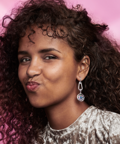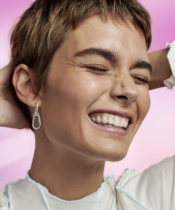 Special features: top hoop is polished with a logo vertically laser engraved on one side; polished lower carabiner clasp dangles perpendicularly; carabiner clasp opens inwards and features spring back function. Extra note: style max five mini dangles. one connector. one medallion. one double link or one styling link for added movement. Sold as a single piece. Inspiration: enjoying the ultimate level of personalization and freedom of styling for an individual. customized look.