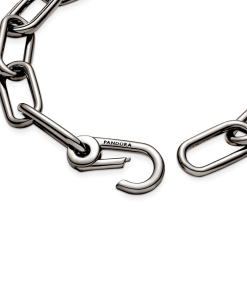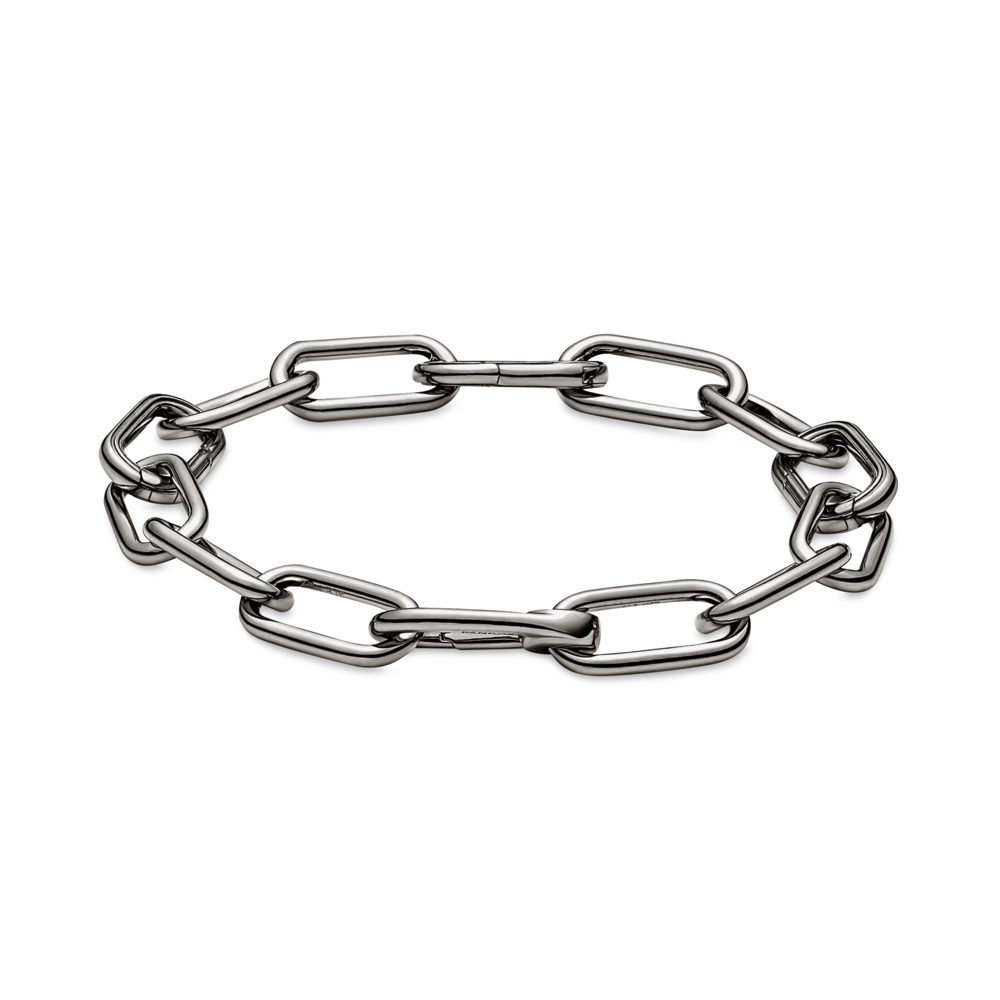 Special features: a statement link bracelet with a carabiner clasp; three openable connectors each with grooved lines on the sides following the shape of the links; the carabiner clasp and the openable connectors open inwards with springback function; links are grouped in pairs of two or more links. depending on the size of bracelet; logo engraved on two sides of the carabiner clasp. Styling note: one set of interlocking links between each connector corresponds to one double link. four small interlocking links or one styling link; replaced with same length elements to keep the size and length of the necklace 1:1; you can style medallions with openable top parts on both links and connectors; style mini dangles with closed top parts on openable connectors only; for a custom look exchange the three connectors with other connectors or the links in between with other links of the same length; each openable connector can be styled with a maximum of 8 Me mini dangles or 2 Me medallions. Inspiration: enjoying the ultimate level of personalisation and freedom of styling for an individual. customised look.